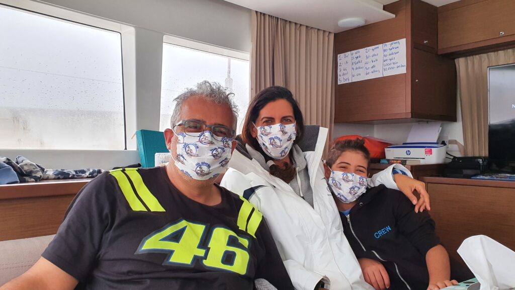Flustered by the sudden visit, we retrieved our file that holds all the pertinent papers and made our passports ready. An authoritarian yet pleasant guard asked us some basic questions on where we were headed and where we came from and then asked for our papers. The coast guard boat was magnificent, it a large, sturdy structure with sophisticated gadgets and their team was in full uniform with their masks and full gear on. As I went to get our passports, I came back to find Anwar going on to their boat. That’s when I started to feel nervous! When they first arrived I was startled then felt okay that it was the coast guard but when Anwar left our boat, I thought “there’s something wrong”. I kept looking at Anwar’s expressions to evaluate what was going on; he was actually talking and laughing and looking around their boat as they explained things to him. Soon he was back on the boat and everything was fine, so it turned out that Anwar had admired their boat so they invited him to have a look at it and gave him a mini-tour. The team were extremely polite and courteous and they gave us face masks with their logo and the number of their boat. We felt safe in Turkish waters after having met them!